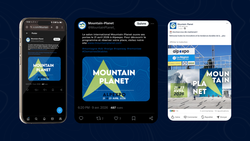 Refonte fictive de l’identité visuelle du Salon Mountain Planet, réalisée dans le cadre du Master en Design Graphique et Numérique pour le cours de Communication 360°, visant à moderniser l’image de l’événement et à proposer une expérience visuelle cohérente et immersive sur l’ensemble des supports de communication.